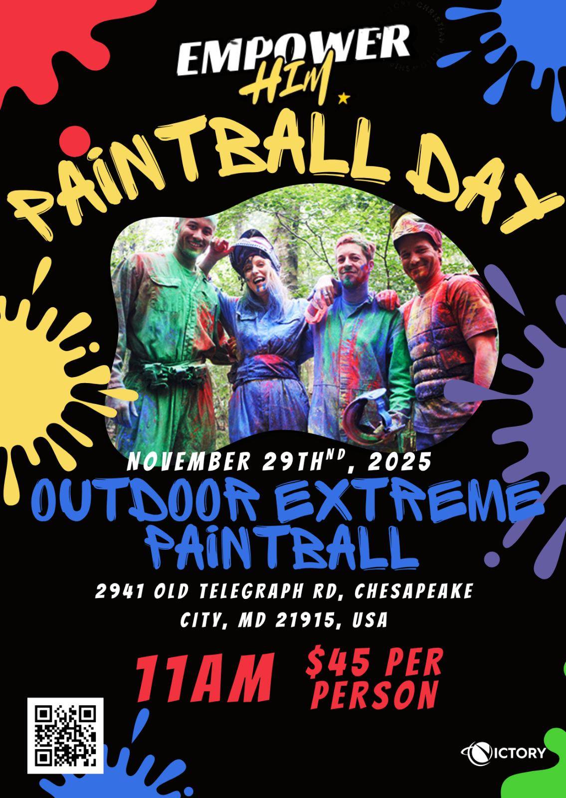 Empower Him: Paintball Day November 29th, 2025 @ 11am $45 Per Person Register at: https://vcf.ccbchurch.com/goto/forms/341/responses/new Location: Outdoor Extreme Paintball 2941 Old Telegraph Rd, Chesapeake City,